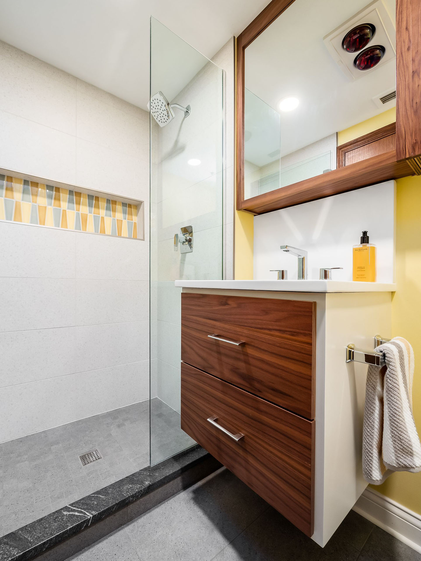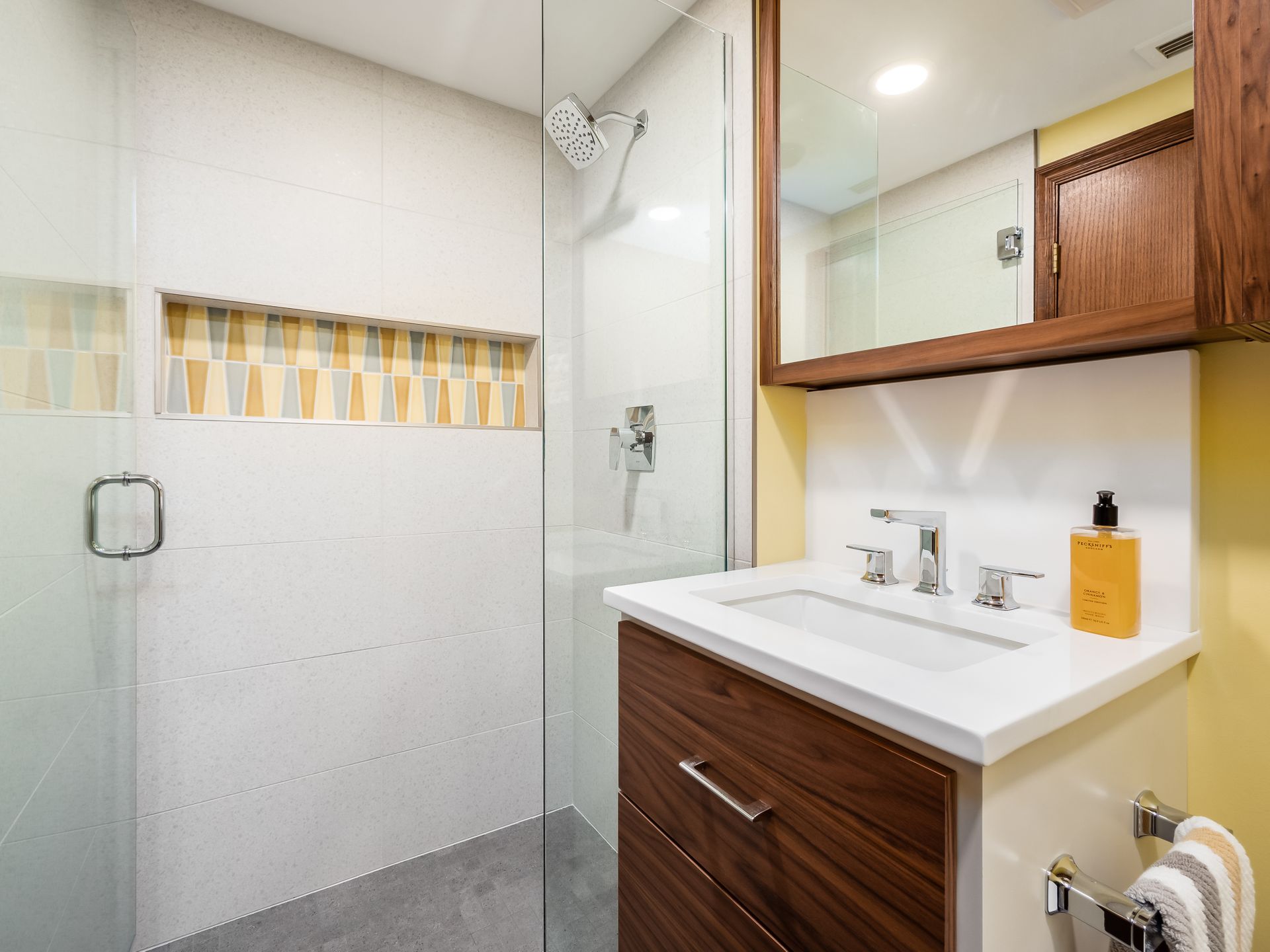 In this apartment bathroom remodel, our goal was to optimize a small space without sacrificing style or functionality. We began by reconfiguring the layout to make the most of the limited square footage. Custom storage solutions were integrated to minimize clutter and enhance usability. High-quality tiles, contemporary fixtures, and a fresh color palette were selected to create a bright and airy atmosphere. Despite the compact size, the result is a bathroom that feels open, inviting, and perfectly suited to modern apartment living.